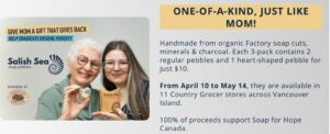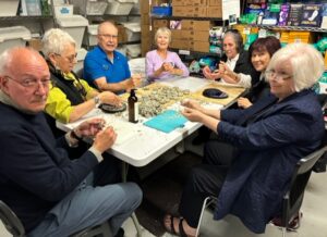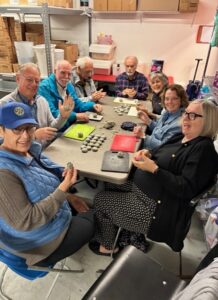 April 23; 15 members of the Rotary Club of Sidney by the Sea, caught a ride in the Fab Bus, operated by Rotarian Glenn Moore, to the Soap for Hope warehouse in Esquimalt. They made the trip to learn more about the work of Soap for Hope program and volunteer to make Soap Pebble out of waste from the soap making process. The Soap Pebbles are formed by hand and when finished become a product, sold through the Soap for Hope social enterprise that raises funds in support of their purpose of eliminating hygiene poverty. This service project made real the idea that many hands make light work. Fun and clean hands all around.